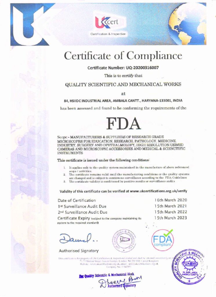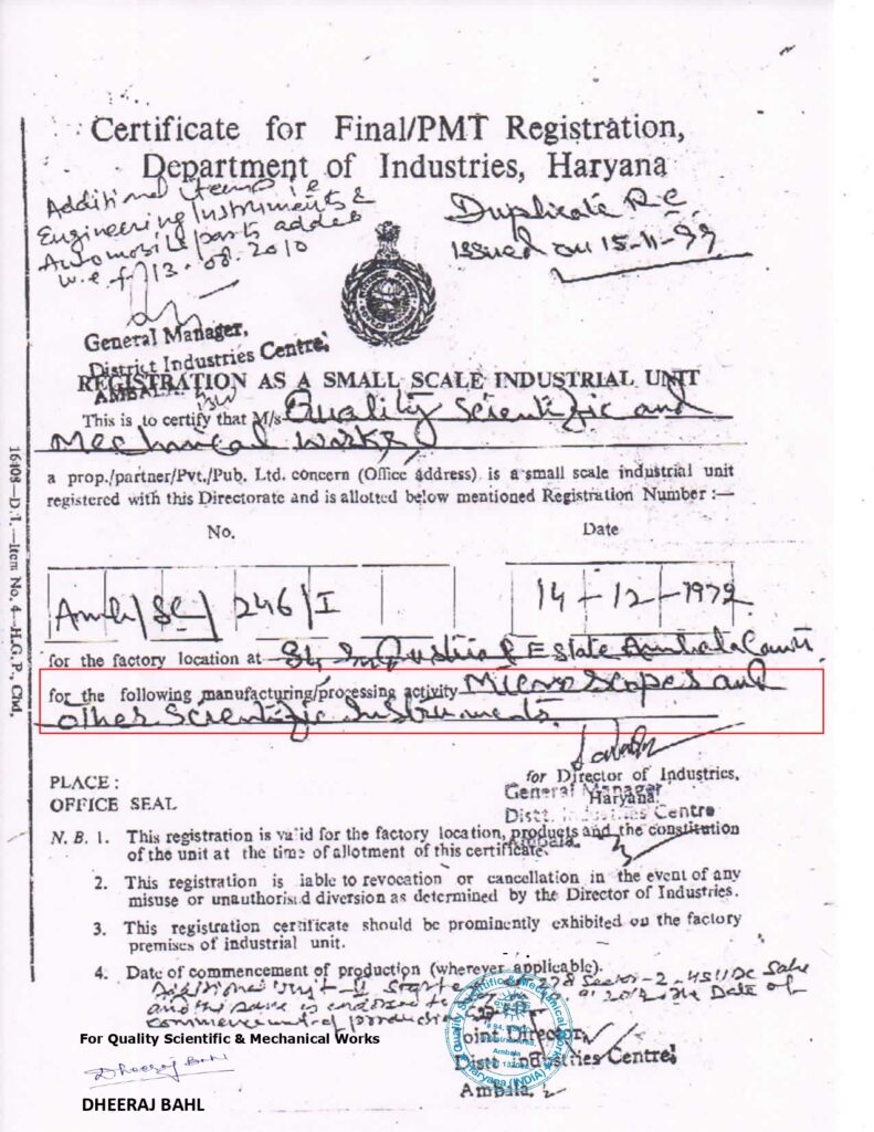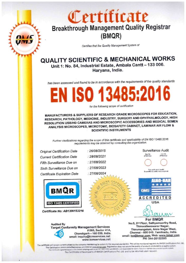 Quality Scientific & Mechanical Works (microscope manufacturers in India) has ushered onto the path of accelerated growth since its establishment in the year 1961. The logical ideas and effective methods to handle the managerial activities, have assisted the company to acquire distinguished position amidst the dependable Industrial & pathological Microscopes Manufacturers in India. The company has also earned loads of appreciation in the market for dealing in Scientific & Industrial Instruments.